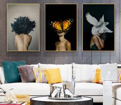 Tranh Bộ 4 Tấm Hoạt Họa Cô Gái và Lá Hoa Trừu Tượng – CV2051
