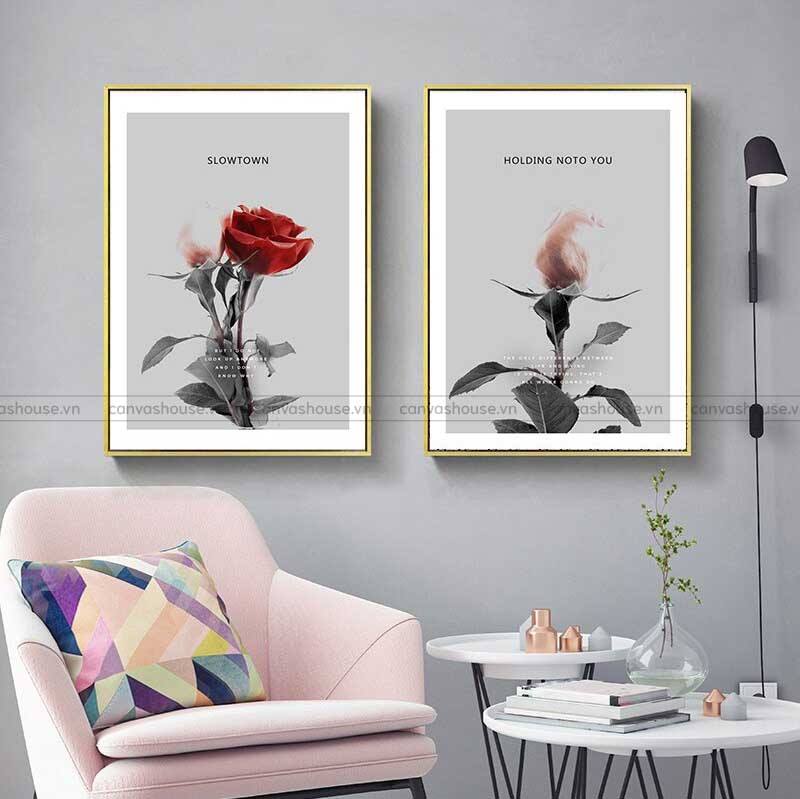 Tranh Đôi Hoa Hồng Đỏ và Lá – CV1850